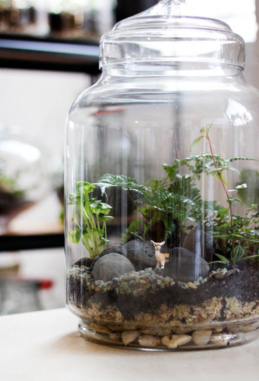 在透明有盖子或瓶口小的玻璃器皿内种植室内观叶植物。它所使用的玻璃容器形状繁多,如广口瓶、圆锥形瓶、鼓形瓶等。由于此类容器瓶口小或加盖,水分不易蒸发,而散逸外在瓶内可被循环使用,所以应选耐湿的室内观叶植物。迷你花房一般是多品种混种。在选配植物时应尽可能选择特性相似的配植一起,这样更能达到和谐的境界。