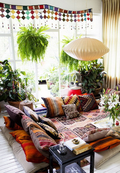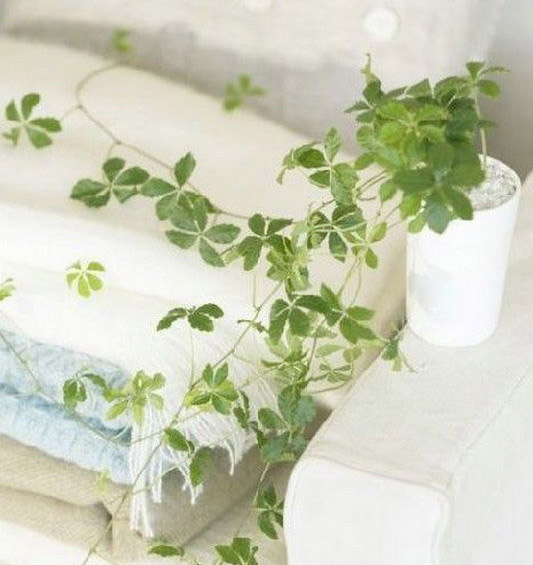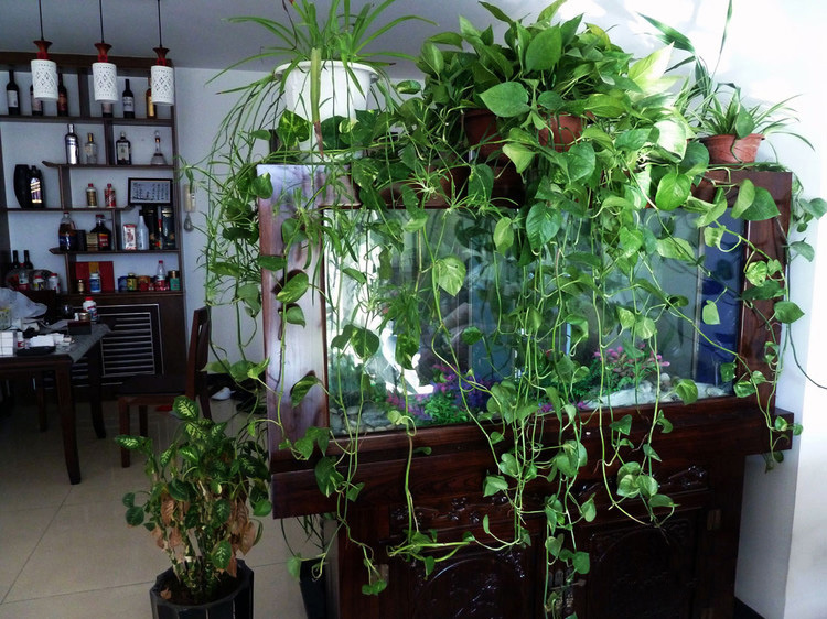 在室内较大的空间内,结合天花板、灯具。在窗前、墙角、家具旁吊放有一定体量的阴生悬垂植物 ,可改善室内人工建筑的生硬线条造成的枯燥单调感,营造生动活泼的空间立体美感,且“占天不占地”,可充分利用空间。这种装饰要使用一种金属吊具或塑料吊盆,使之与所配材料有机结合,以取得意外的装饰效果。